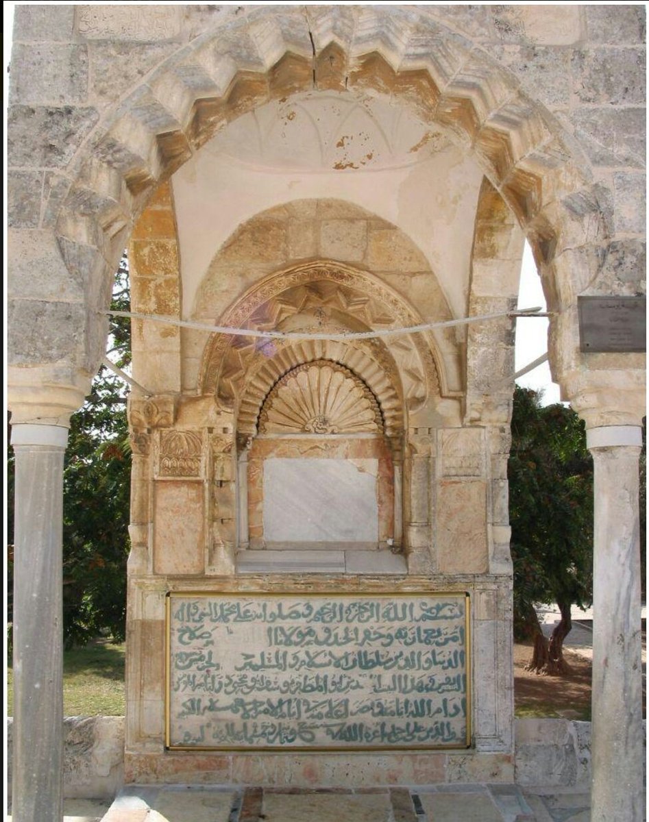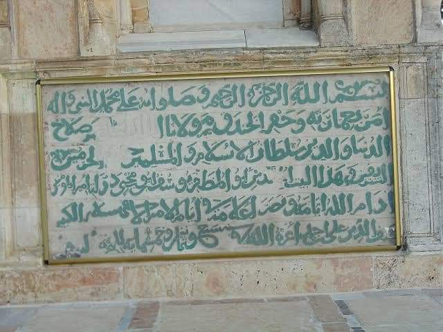 4-ويبدو أن النقش نقل إلى الحرم الشريف خلال تعمير أسوار المدينة أثناء حكم السلطان العثماني سليمان القانوني(حكم في الفترة(974-926هـ)(1566-1520م) كتب نص النقش في ستة سطور بالخط النسخي الأيوبي المشكول البارز ويفيدنا هذا النص معلومات عن عصر صلاح الدين الأيوبي 👇