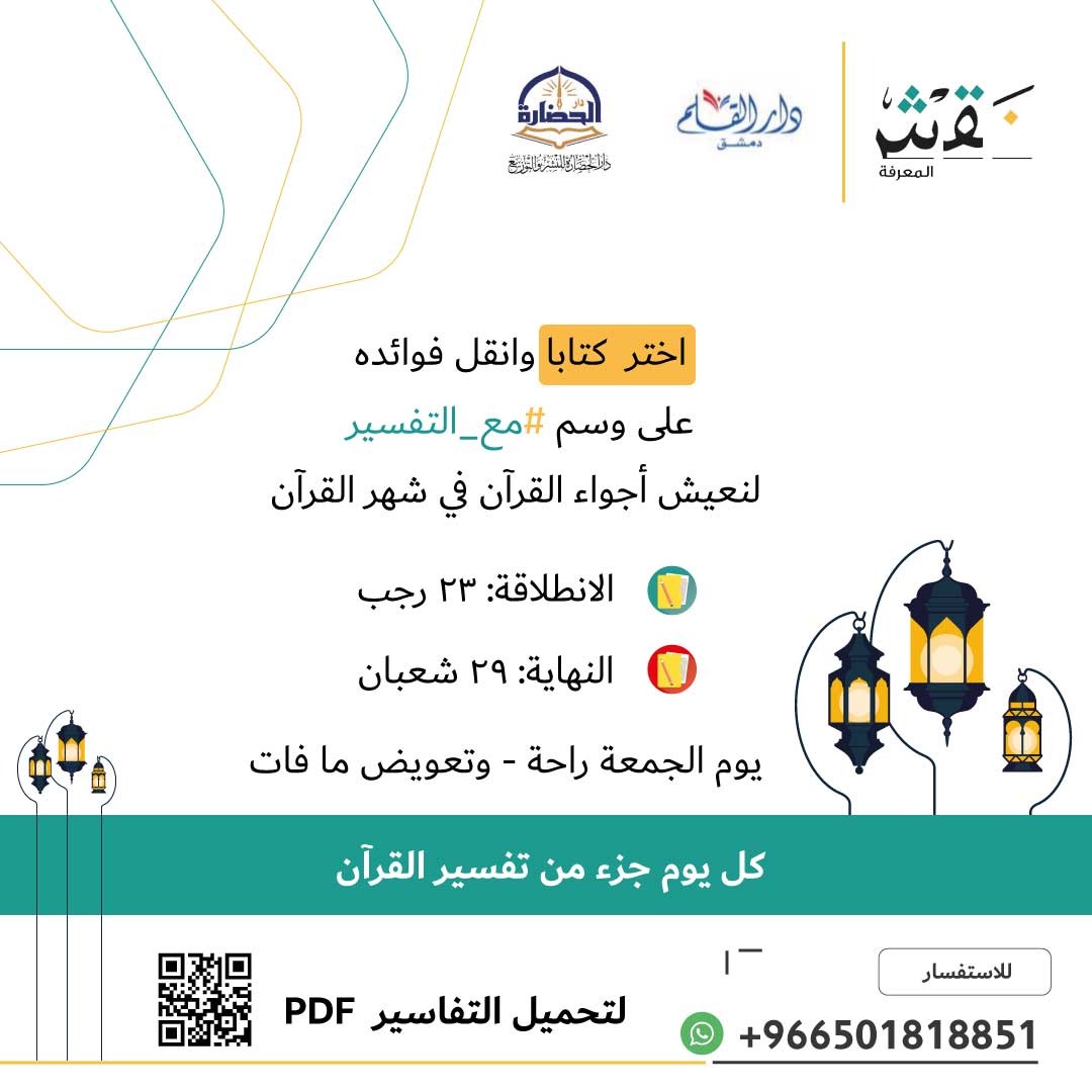 ابدأ معنا من اليوم في قراءة تفسير من تفاسير القرآن الكريم المختصرة والميسرة = حتى تنجز قراءة تفسير كامل قبل دخول #شهر_رمضان