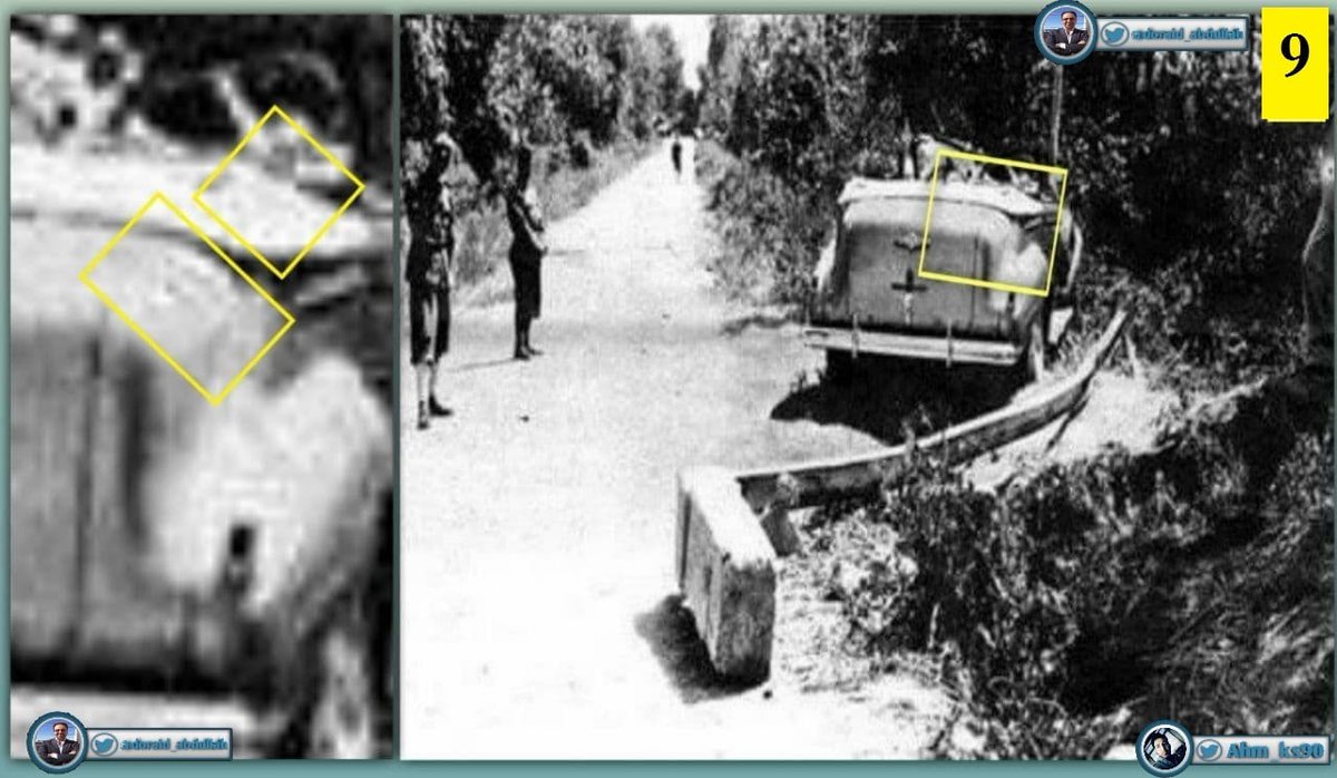 ☑️امكانية(قتل الملك)وسط الطريق:أيد الخبراءحدوث هكذاحالة(على ضعفها)لكنها تحتاج لوجود(20)رجلاً ينتظرون الملك بعد الجسر ويوقفون سيارته وخلال29ثانيةيجب على(3منهم ان يقتلوه)والبقية(بمطارقهم الضخمة)ان يحطموا(السيارةوالعمود)لكن بدون إحداث صوت يسمعه من في القصر(على بعد500متر)