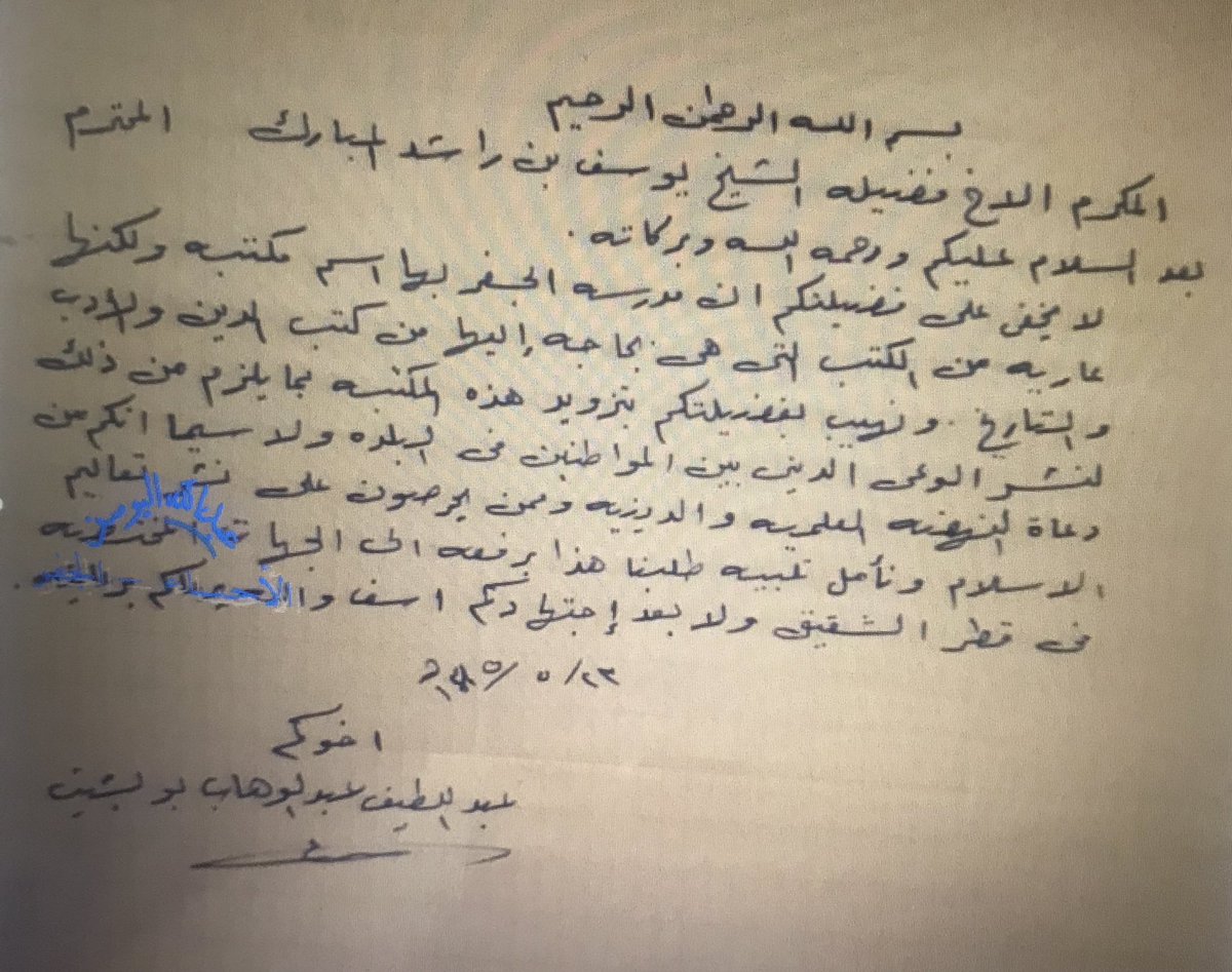 ففرح الشيخ لهذه الزيارة الليلية، وقدم الكتاب هدية لسموه تقديرًا وعرفانًا للزيارة التي وعد سمو الأمير متعب بتكرارها في وقت أنسب حيث كان الوقت ليلًا والبلدة تغط في عتمة .
