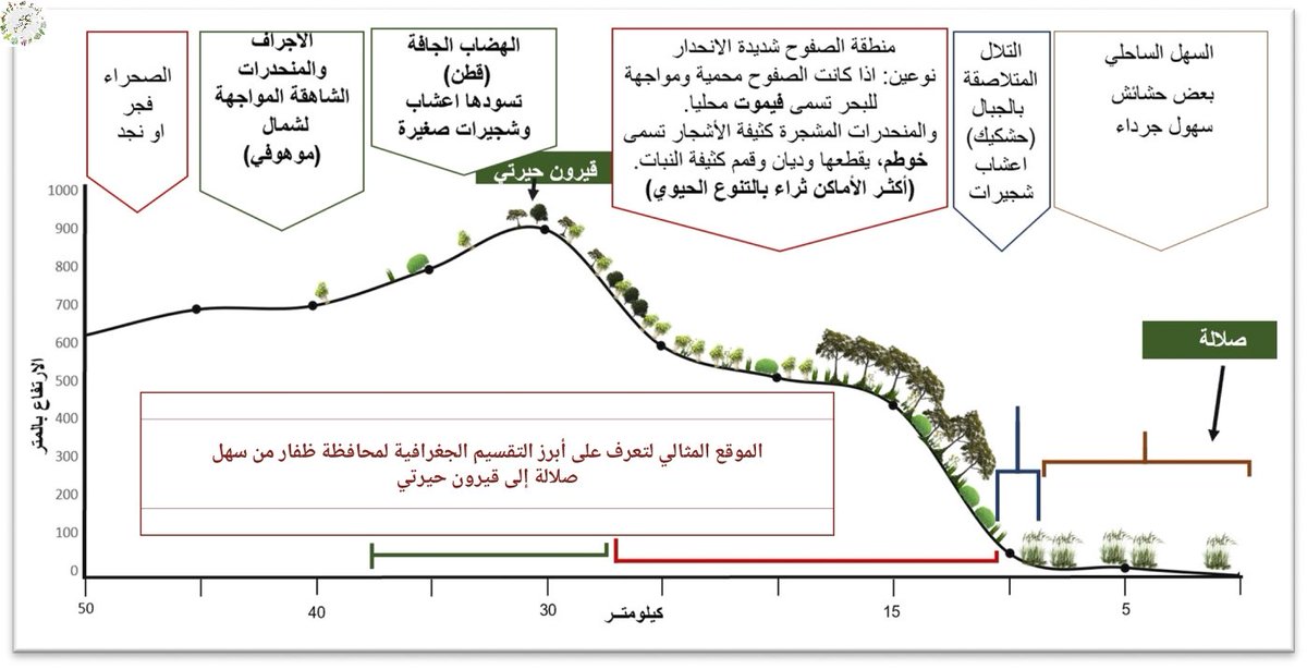 حتى تتعرف على التنوع الحيوي في ظفار يجب أن تتعرف جيدا على التضاريس الجغرافية المختلفة والتي تختلف في الارتفاع عن سطح البحر وكمية الأمطار وايضا أشجار خاصة لكل شريحة جغرافية..