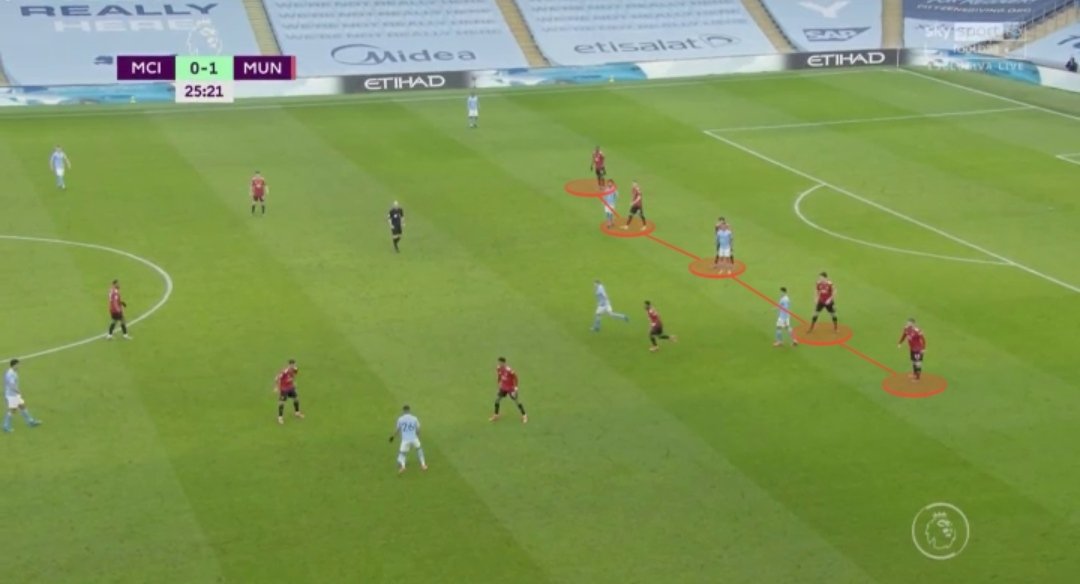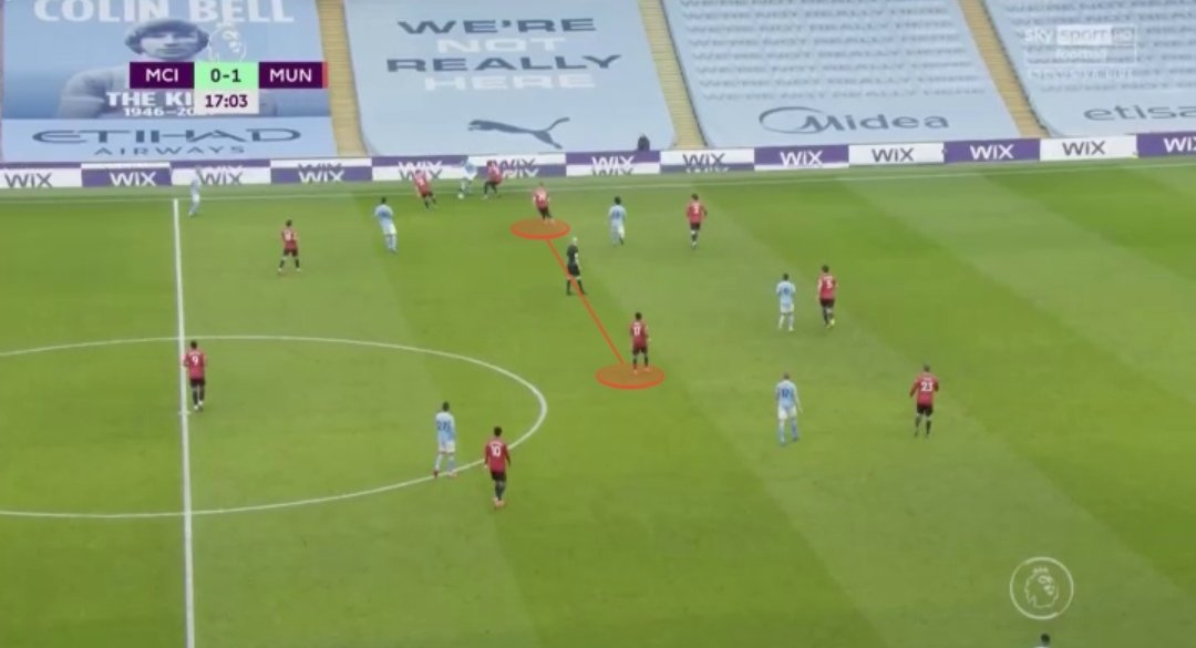 أما ضد السيتي فسجل يونايتد هدفه الأول من ركلة جزاء ثم الثاني من مرتدة سريعة على الجهة اليسرى إلا أن ما أثار الانتباه أكثر هو تعامل يونايتد بدون كرة. تعامل خرج الفريق بفضله بشباك نظيفة مرة أخرى.