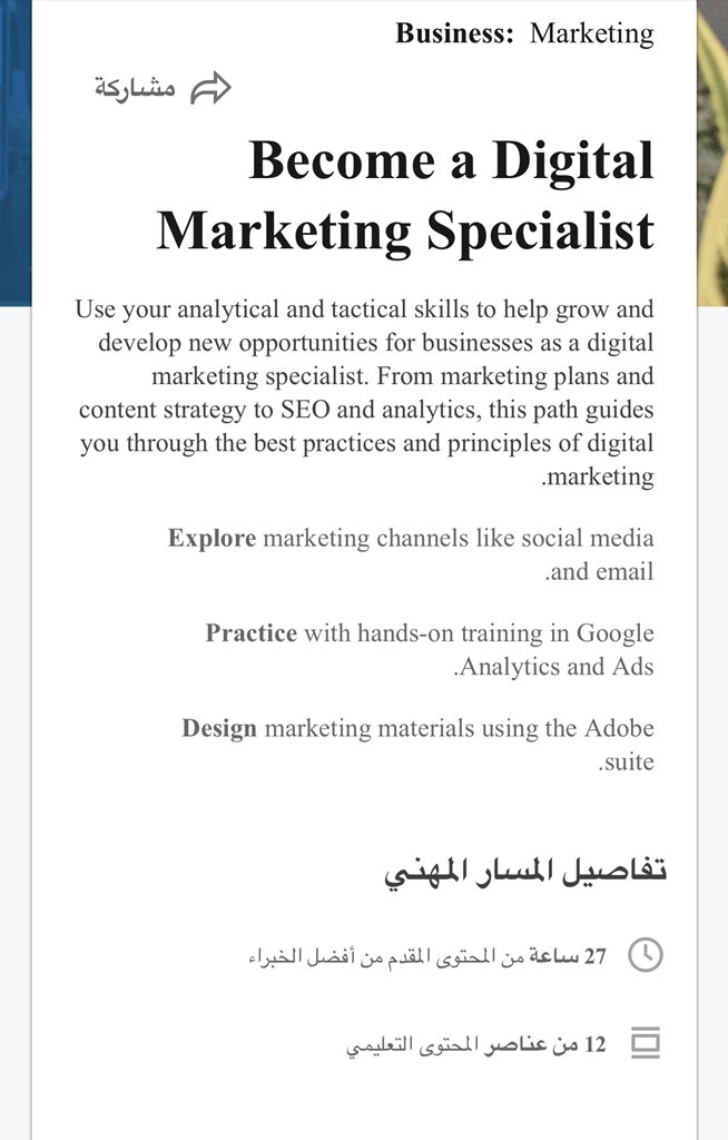 1- كورس مجاني تخصص التسويق الرقمي الموصى من Linkedin✨