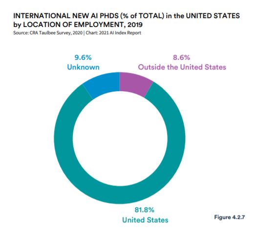 *في عام 2020 ، ولأول مرة ، تفوقت الصين على الولايات المتحدة في حصة الذكاء الاصطناعي من الإقتباسات من المجلات العلمية