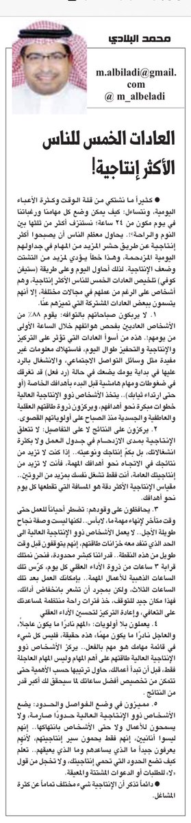 لا تتعلق الإنتاجية بمدى الازدحام في جدول العمل ولا بكثرة انشغالاتك،بل بكمّ إنتاجك ونوعيته.
