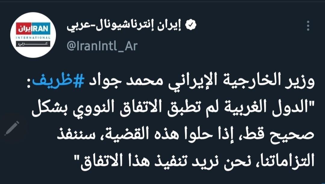 🔴 ولكن وزير الخارجيه إلايراني (محمد جواد ظريف ) صرح من خلال (موقع إيران أنترناشونال بالعربي ) بإن الدول الغربيه مطبقتش لغايه دلوقتي #الأتفاق_النووي بشكل صحيح ولو حلوا القضيه ده تحديداً سوف نلتزم بجميع التزاماتنا لإن إيران تريد تنفيذ هذا الأتفاق 2️⃣