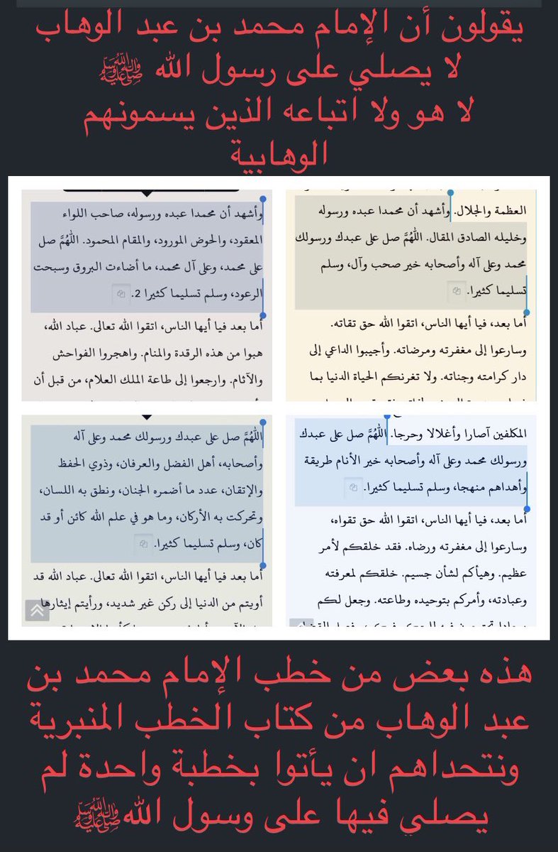 معاشر المسلمين:سأنقل لكم بعض نصوص الإمام من كتبه المطبوعة، لأبين كذب تلك النابتة في هذا الزمن.