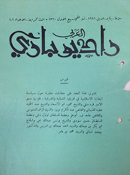 في بدايات نشأة الأجهزة الإذاعية الحديثة في أوائل الثلاثينيات الميلادية أطلقت إيطاليا بث أول إذاعة عربية وهي"راديو باري" عام 1934م نكايتاً في الهيمنة البريطانية في الشرق وكانت غالب البرامج تبث من الساعة 12.00م الى الساعة 10.00م. فجميع هذه البرامج..برامج تحريضية ضدبريطانياومصالحها=