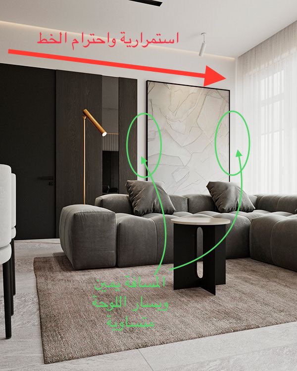 احياناً المصمم يحاول مجاراة اللوحة للخطوط الطولية والعرضية للعناصر المعمارية