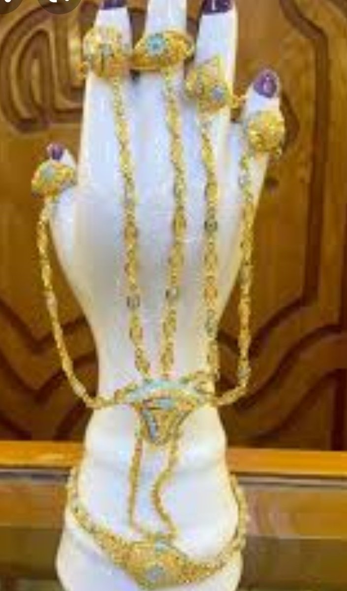 وتلبس الرشرش واليد الجريحة والمعضد وحزام ذهب والخلخال والعروس الشابة في أسبوع زواجها تلبس هذا كله إضافة للهامة أن كانت ذات شعر القرعاء ماتستاهل 😂 وأعني بالقرعاء اللي شعرها نص ظهرها أو خصرها
