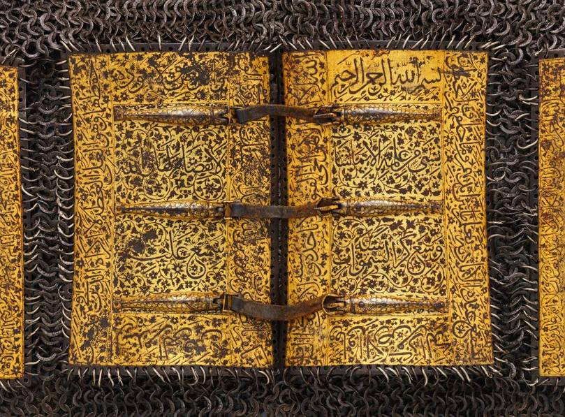 درع ذهبى منقوش فيه آيات من سوره البقرة