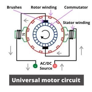 ولذلك سمي بالمحرك العام، وله اسم آخر مشهور به وهو محرك التيار المتردد الموصل على التوالي (AC Series Motor).