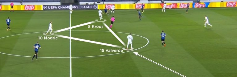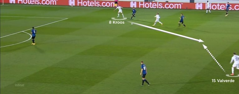 في هذه المرحلة من المباراة بدأ استحواذ ريال مدريد على الكرة يزداد، مما أجبر أتالانتا على زيادة حدة الضغط على حامل الكرة، وأدى هذا إلى زيادة المسافات بين خطوطهم في الحالة الهجومية مما أعطى لمودريتش وكروس مزيدًا من الهدوء في الخروج بالكرة.