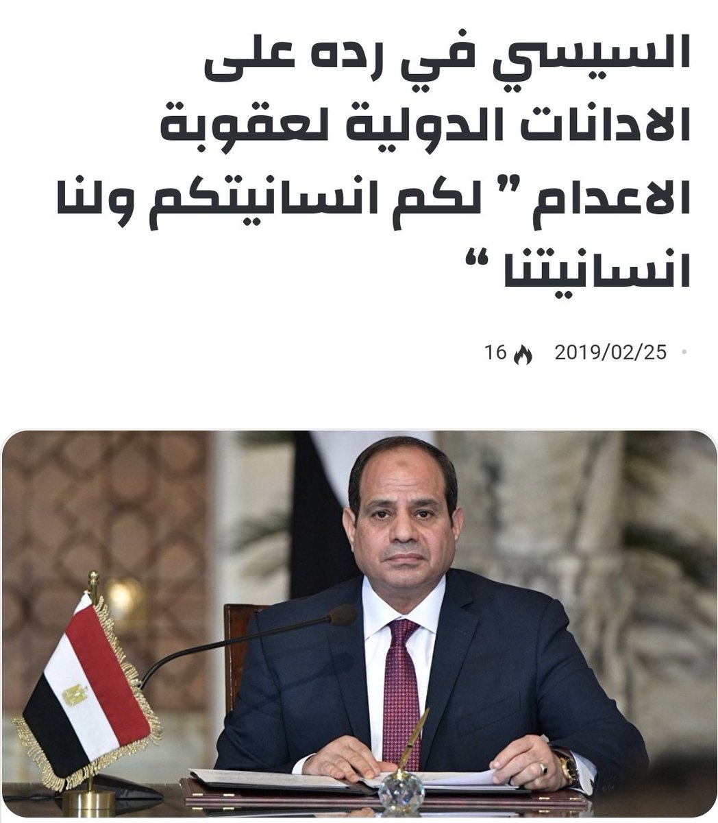 ببساطة #السيسي يقول للعالم الغربي : أنتم لديكم مواطنون، عندهم حقوق وحريات ، لكن نحن لدينا دولة ونظام نريد الحفاظ عليه ، حتى لو بانتهاك حقوق المواطنين ، فالبشر لديكم مختلفون عن البشر لدينا... وإنسانيتكم غير إنسايتنا.