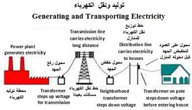 يصل التيار بعد ذلك إلى محطة فرعية حيث يُخفص جهده ليُنقل عبر خطوط نقل أصغر حتى يصل إلى المحولات الموزعة ضمن المناطق السكنية.