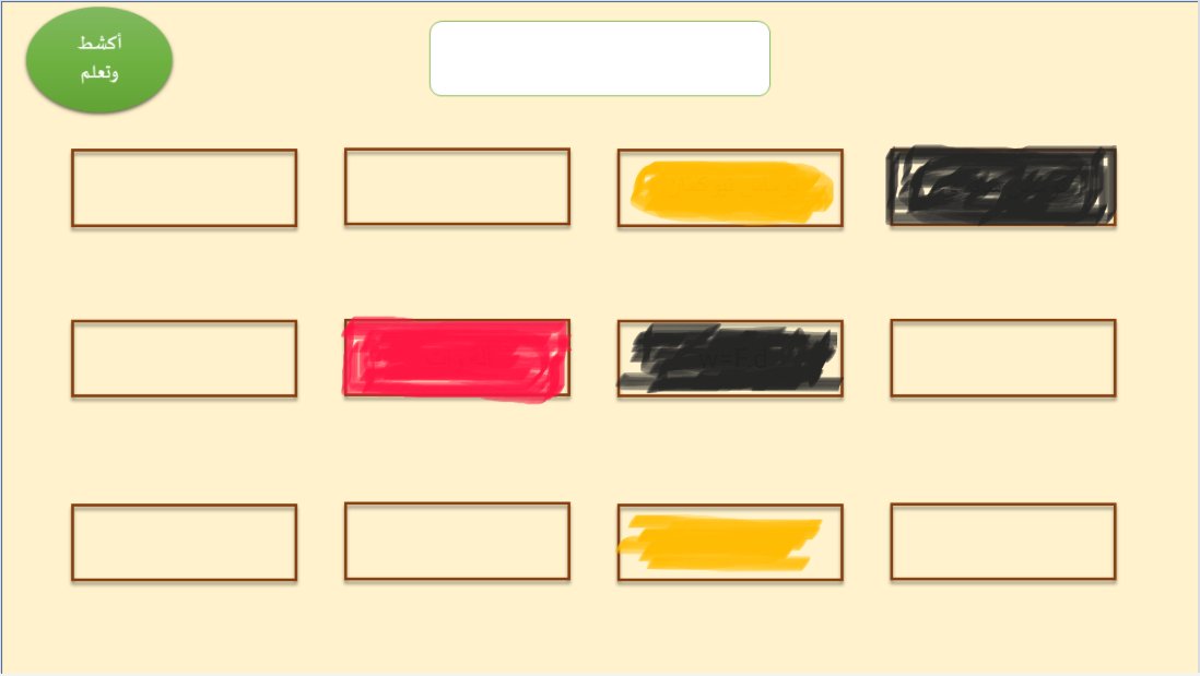 على المعلم كتابة المعلومة التي يريد داخل المستطيل، ثم يظلل المستطيل عن طريق أداة القلم ، وبعد ذلك يطلب من الطالب اختيارة أدةا المسح ويكشط التظليل..