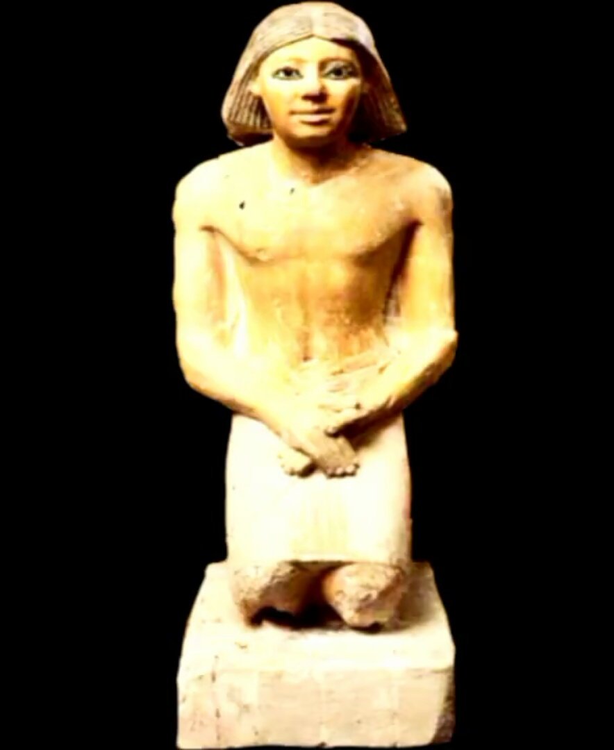 ♥ تمثال الكاهن المصري الأصيل والمشرف على الخزانة الملكية القزم "خنوم حتب" تم العثور عليه بمنطقة سقارة بالجيزة من الحجر الجيري الملون 👇