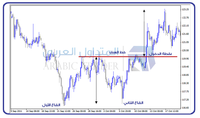 لا يتمكن البائعون من تجاوز القاع الأول ويسيطر المشترون فيصعد السعر من
