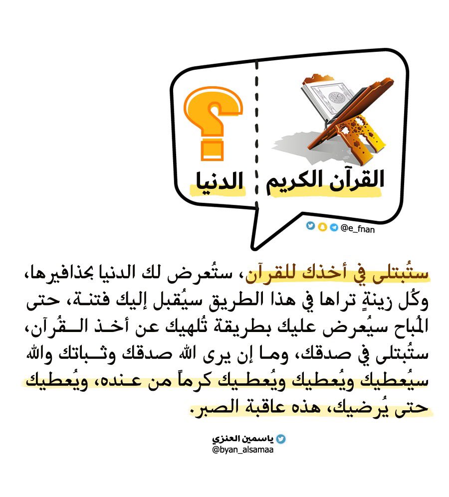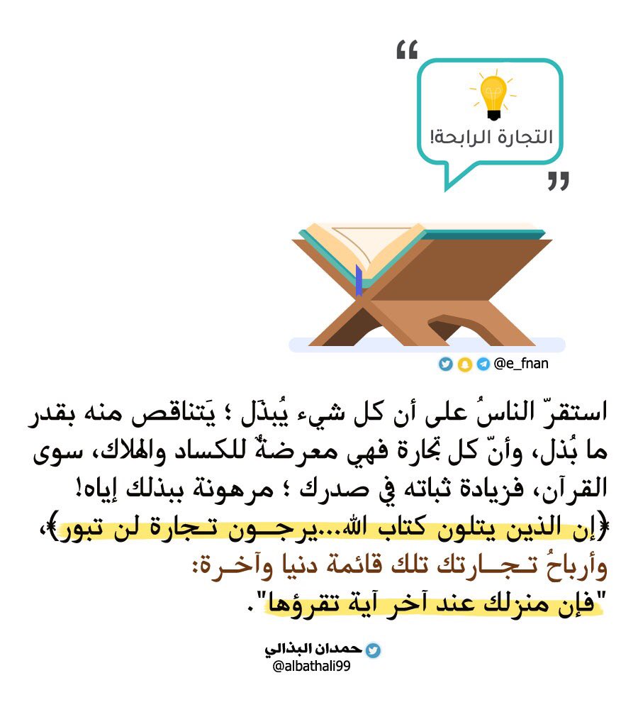 وأرباحُ تجارتك تلك قائمةٌ دنيا وآخرة: "فإن منزلك عند آخر آية تقرؤها".