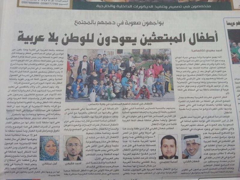 بعد العودة قمت بتسجيله في حلقة لتدريس القرآن وبدأ لسانه يتفتق أكثر. كان يقضي ٦ ساعات في المدرسة (انجليزي) و ساعتين في المسجد (قرآن) و باقي وقته في البيت عربي فقط. حققنا توازن له بدخوله للمسجد.
