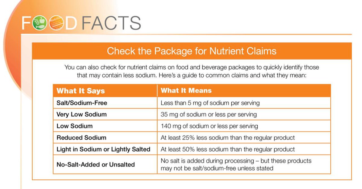 على من يعاني من مشاكل صحية كالضغط ان يراقب كمية الملح في البطاقة الغذائية للمنتج، حيث يوصى ان لا يزيد الاستهلاك للصوديوم عن ٢٣٠٠ مليجرام في اليوم وهذا يعادل معلقة شاي واحدة لكامل اليوم. ——> يتبع