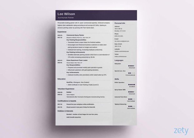 موقع zety الغني عن التعريف يتميز بان سيره الذاتية بسيطة ومرتبة، وتقدر تخلص تضبيطها بدقائق معدودة