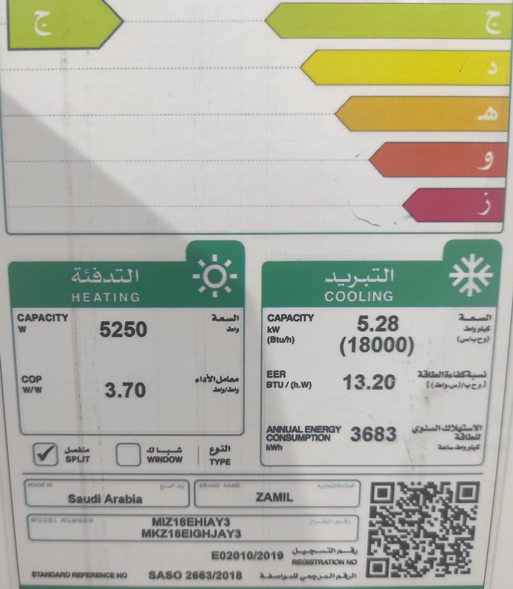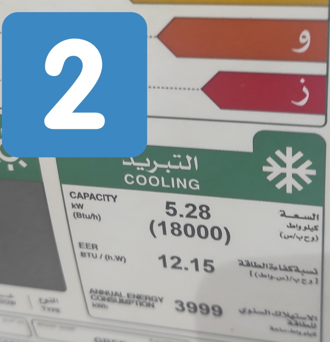 والتي يمكنك المقارنه بين جهازين بمعلومه "نسبة كفائه الطاقة"
