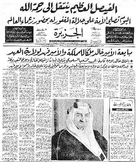 في مثل هذا اليوم من العام 1975، قام الأمير فيصل بن مساعد بن عبد العزيز آل سعود بإطلاق النار على عمه الملك فيصل بن عبد العزيز آل سعود ملك المملكة العربية السعودية، خلال استقباله لوزير النفط الكويتي عبدالمطلب الكاظمي في مكتبة بالديوان الملكي وأرداه قتيلاً،،