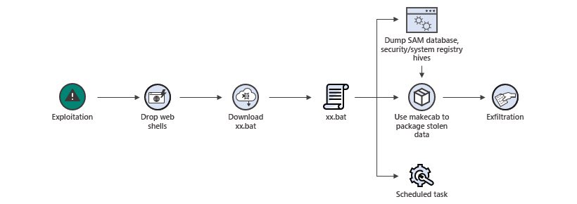 حيث تقوم مايكروسوفت ان بعض المهاجمين قاموا باستغلال الثغرة ولكن لم يقوموا باي تحركات بعد الاستغلال والتي قد تكون اما (تسريب بيانات - فايروسات الفدية- سرقة كلمات المرور) وقد يقوم المهاجم بتركيب ابواب خلفية للاستخدام لاحقاً.