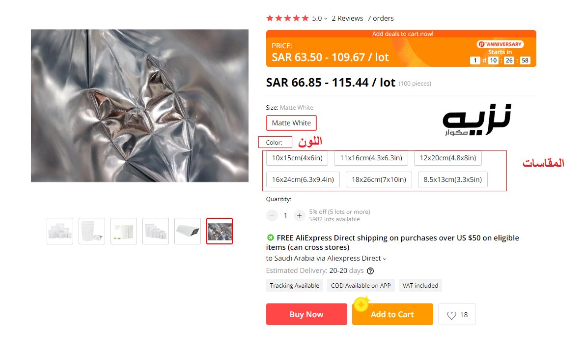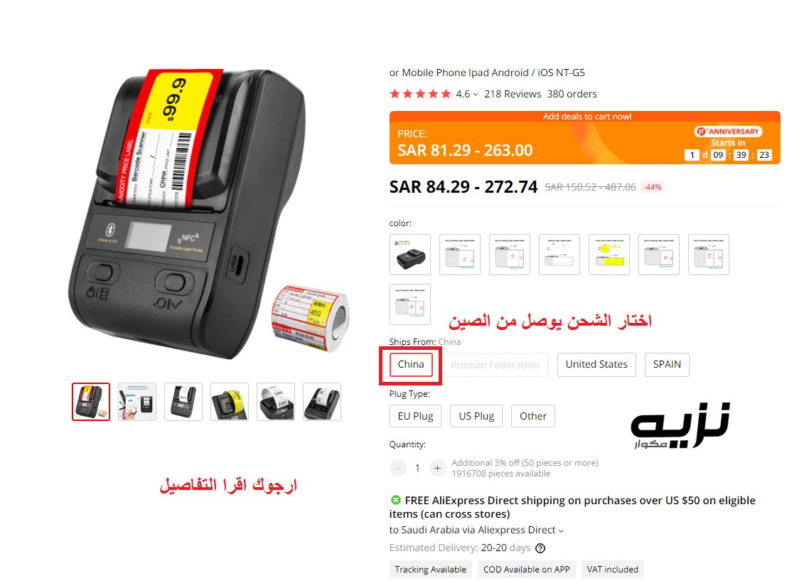 و احرص يكون طريقة الشحن ( علي اكسبريس دايركت )