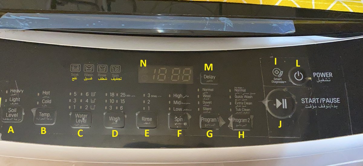يستخدم في حالة الغسيل اليدوي. أو عندما نريد تجاوز البرنامج الذي اخترناه من خلال G H. حيث نستطيع زيادة أو تقليل زمن الغسيل حسب الرغبة.