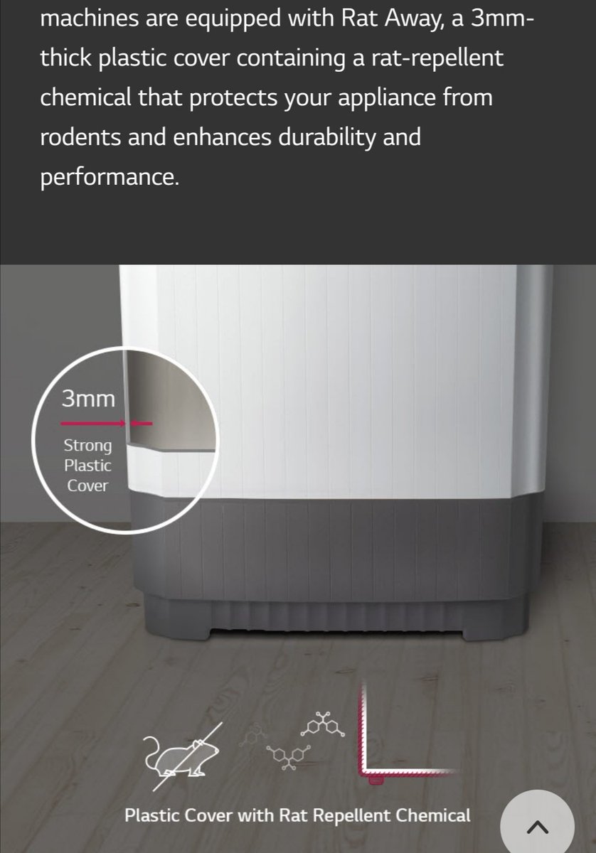 حيث أن هذه الغسالة ستحتوي على طبقة بها مادة كيميائية طاردة للفئران