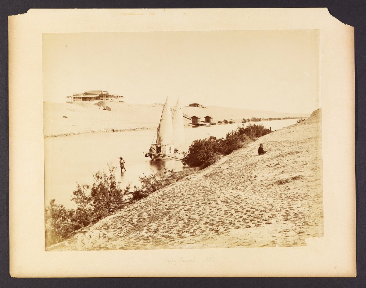 8. مجموعة صور من أرشيف معهد جيتي لقناه السويس وبواخرها مع بعض المراكب الشراعية