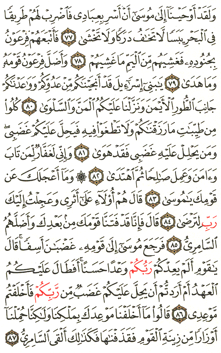 باامر من الله واتبعهم فرعون وهامن وجنودهم الخاطئين فااغرقهم الله في اليم البحر وانجى بني اسرائيل من الغرق ومن فرعون وبعد ماانجاهم الله راو قوم يعكفون لعجل وثني وسئل نبي الله موسى ان يجعل لهم اله فغضب منهم وذهب لمناجات وتهجد في موسم الحج الى الله تعالى.