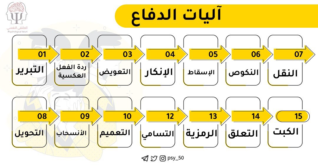 آليات الدفاع: هي عملية لا شعورية هدفها خفض التوتر والقلق والضيق التي تنشأ من استمرار حالة الاحباط مدة طويلة.