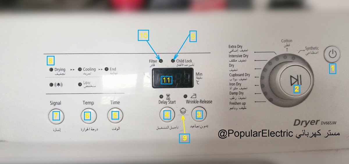 و الصور المرفقة تشرح الرموز الخاصة بالمجفف