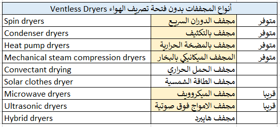 و المجفف بدون فتحة التصريف Ventless Dryer