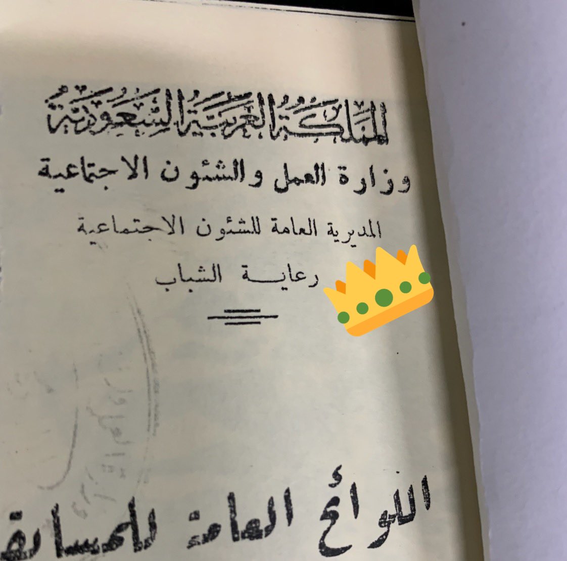 ويوجد عليه التاج وشعار الدوله السيفين والنخله🌴⚔️