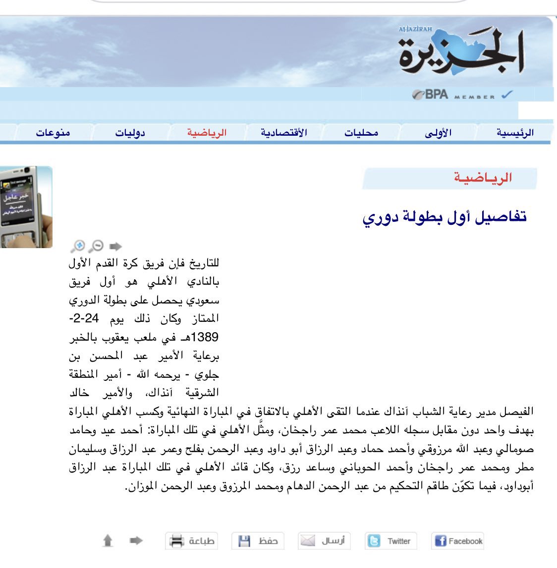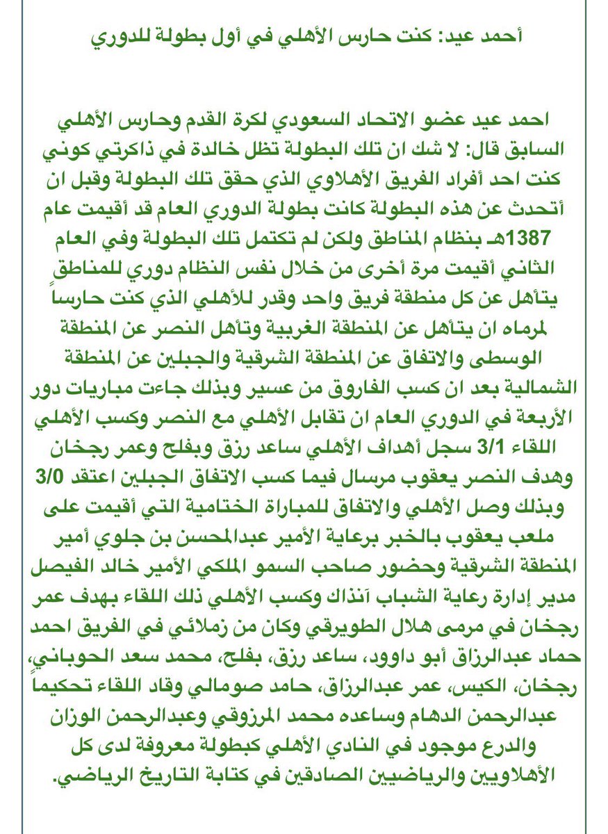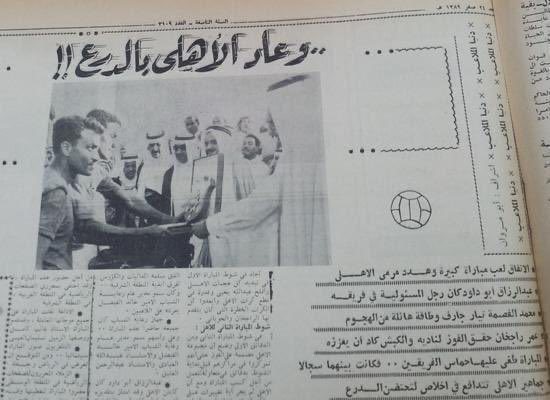 - تقرير عام 1404هـ 1984م يتحدث عن الاهلي عند تحقيقه درع الدوري العام للمره الثالثه ( 1969 - 1978 - 1984 ) .