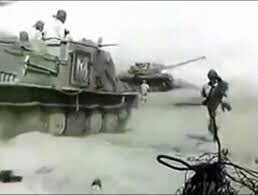 ٢٥- صاروخ الفضاء وتنطلق الى الشرق في اتجاه القناة والقائد خارج الفتحة يمسك ببيرق صغير "علم صغير" يشير به في اتجاه القناة مناديا في اللاسلكي بأسماء السرايا التابعة للكتيبة