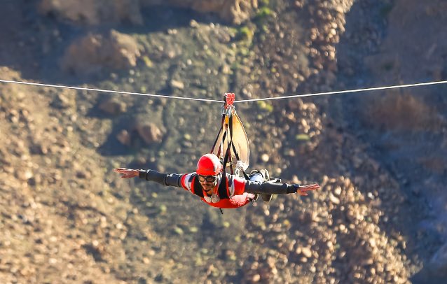 جرب احساس الطيران بسرعة 100كم فوق حرة عويرض باستخدام حبل الانزلاق