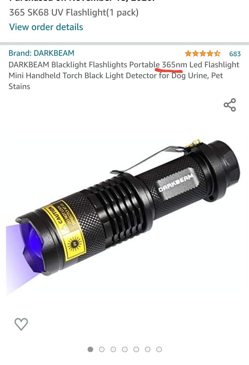 هذا الكشاف اللي استعملته في الفيديو ، يميزه انه الطول الموجي 365 نانوميتر وهو جزء من الاشعة الفوق بنفسجية