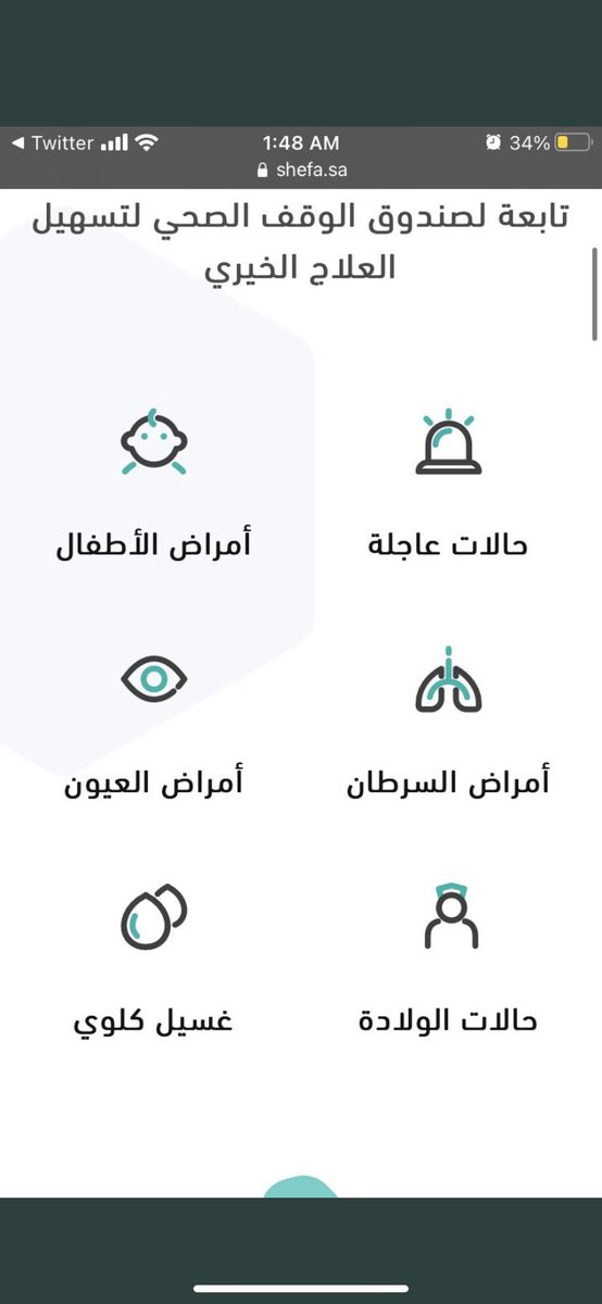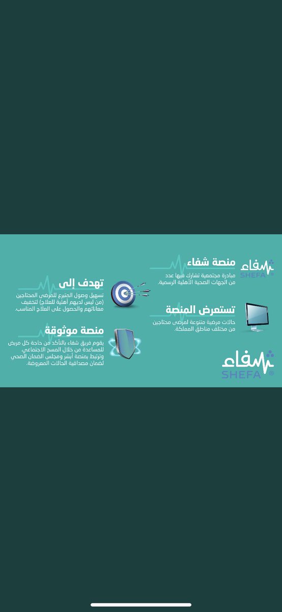 - المنصة الثالثة ( شفاء ) هي منصة تعرض لك حالات مرضى كبار بالسن أو أطفال محتاجين و تفاصيل العلاج و المبلغ المتبقي، الحلو فيهم يبشرونك على رقمك اذا تم شفاء المريض.