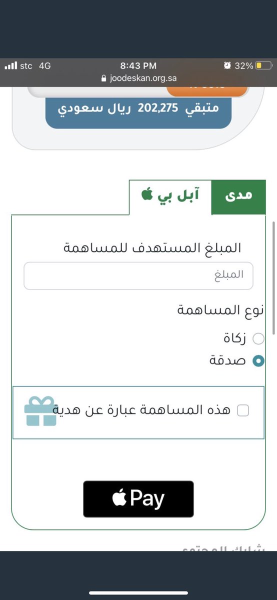 - تدعم ( أبل باي ) و الرابط بالأسفل: donations.sa