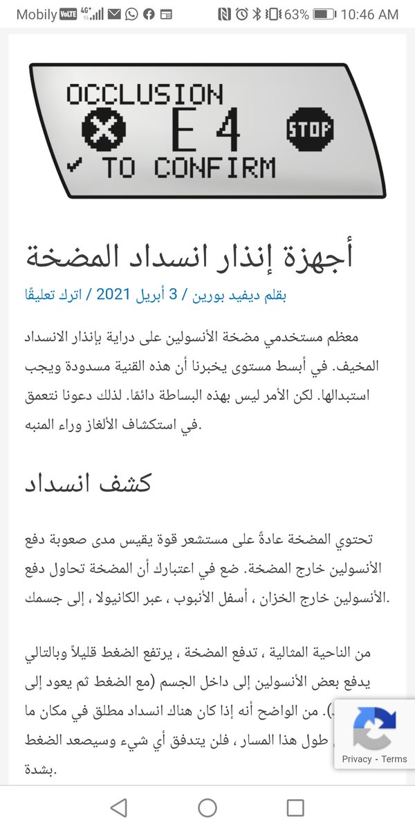 تنبيهات كشف الإنسداد في مضخات الإنسولين
