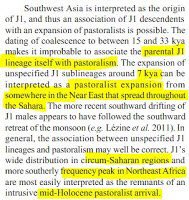 بل أكثر من ذالك ربط الهابلوغروب J1، ك مركر جيني خاص بأنتشار الرعاة و الرحل في الصحراء السودانية و الشمال أفريقية ثم أخيرا صحاري الخليج الفارسي.
