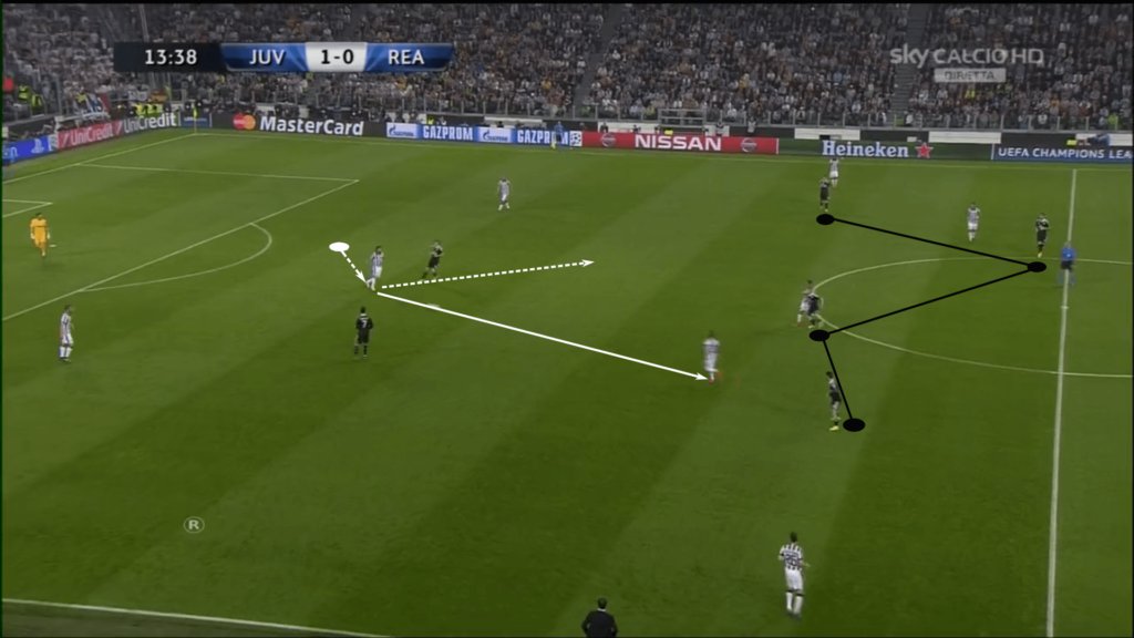 بمجرد أن أطلق بيرلو التمريرة ، تحرك بذكاء عكس زخم بيل إلى النصف الأيسر ، حيث تمكن يوفنتوس من كسر حاجز ريال مدريد.