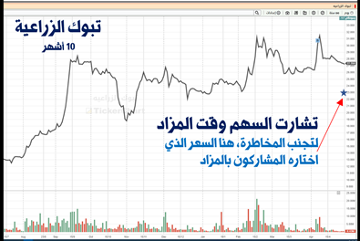 تم بيع حقوق تبوك الزراعية بالمزاد بسعر 12.96 ريال، وسعرها الاسترشادي مفروض كان 17.40 ريال (34% تخفيض) .. هذي طبيعة المزاد للأسف.