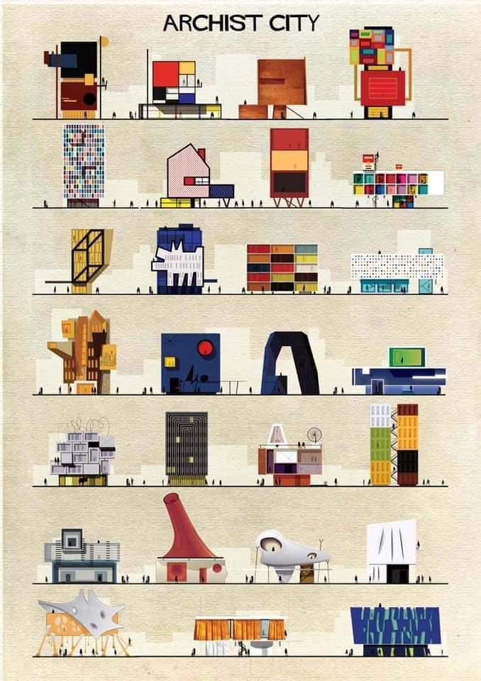 هكذا تخيل أحد الفنانين مدينة صمم مبانيها فنانين ومصممين عالميين مشاهير لهم خطوطهم وتصاميمهم التي يقتنيها ويتبعها الكثيرون