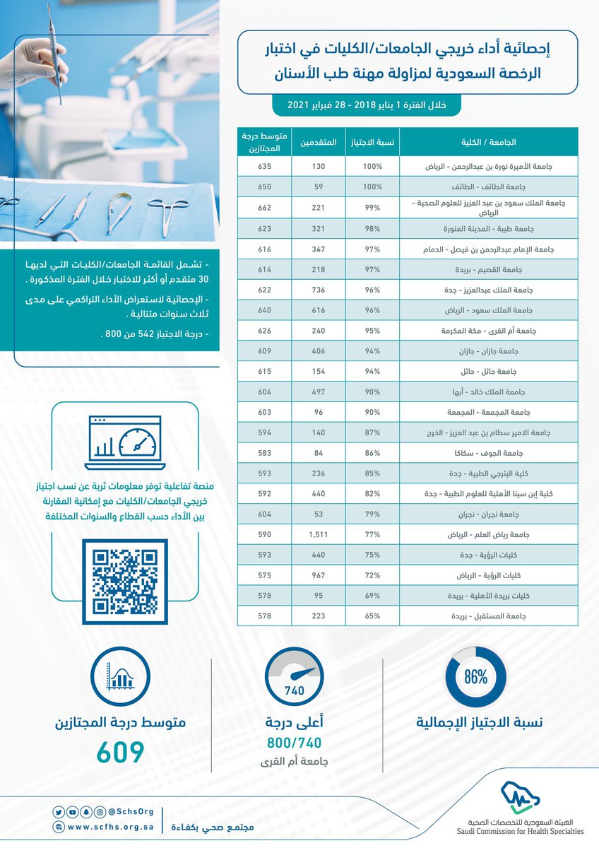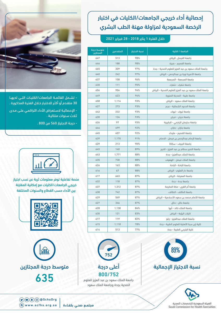 🔴 احصائية اداء خريجي الجامعات والكليات في إختبار #SPLE من يناير 2018 حتى نهاية فبراير 2021